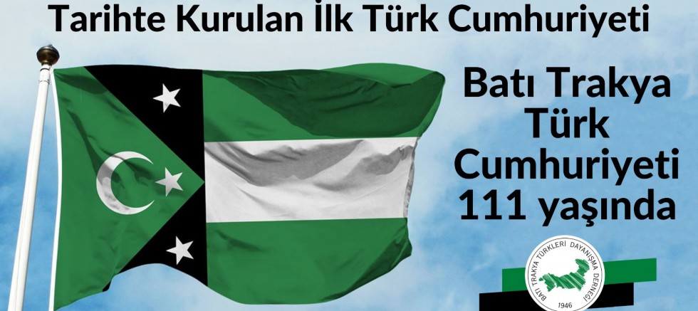 Batı Trakya Türkleri Dayanışma Derneği Genel Başkanı Hasan Küçük tarihte ilk Türk Cumhuriyeti olan Batı Trakya Türk Cumhuriyetinin kuruluşunun 111. Yılında bir kutlama mesajı yayınladı.