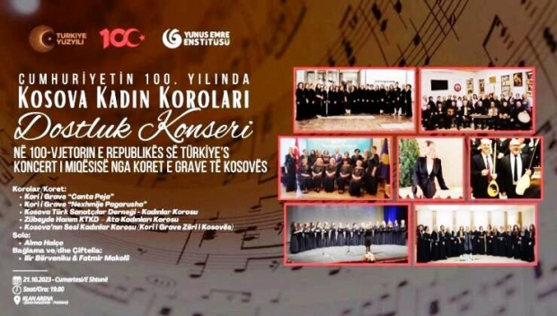 Türkiye Cumhuriyeti’nin 100. Yılı etkinlikleri çerçevesinde Priştine, Prizren ve İpekte çalışmalarına Yunus Emre Enstitüsü’nün destekleriyle devam eden Kadın Koroları tarafından bir “Dostluk Konseri” icra edilecektir.
